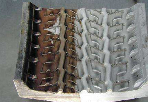 模具中都有花紋和標(biāo)志圖案,這些都是比較細(xì)膩的雕刻工藝。但模具是在高壓、高溫的條件下反復(fù)使用的,不可避免地受到橡膠、配合劑以及硫化過(guò)程中所使用的脫模劑的綜合沉積污染(主要污染物是硫化物、無(wú)機(jī)氧化物、硅油、...